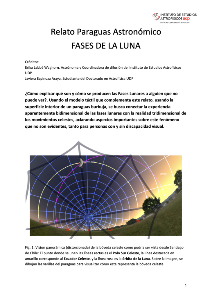 ¿Cómo explicar qué son y cómo se producen las Fases Lunares a alguien que no puede ver?. En la construcción del modelo táctil propuesto -usando la superficie interior de un paraguas burbuja- se busca conectar la experiencia aparentemente bidimensional de las fases lunares con la realidad tridimensional de los movimientos celestes, aclarando aspectos importantes sobre este fenómeno que no son evidentes, tanto para personas con y sin discapacidad visual.