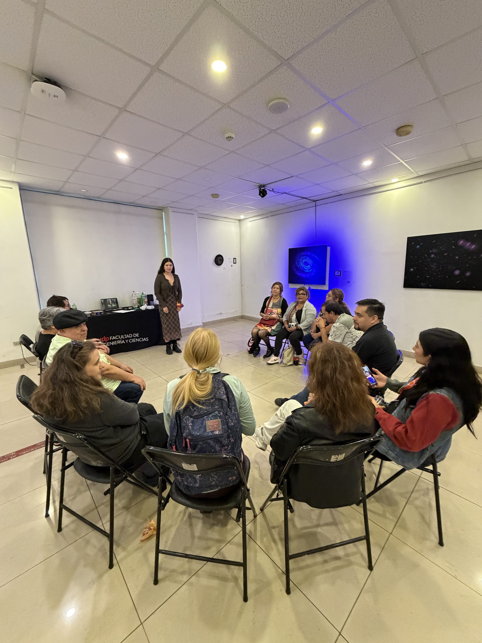 Instalada en la sala de Exhibición de la Facultad de Ingeniería y Ciencias UDP, la muestra es una retrospectiva de los 10 años de trabajo de la artista, que comenzaron en este mismo espacio, en el contexto del día de la astronomía del 2016.